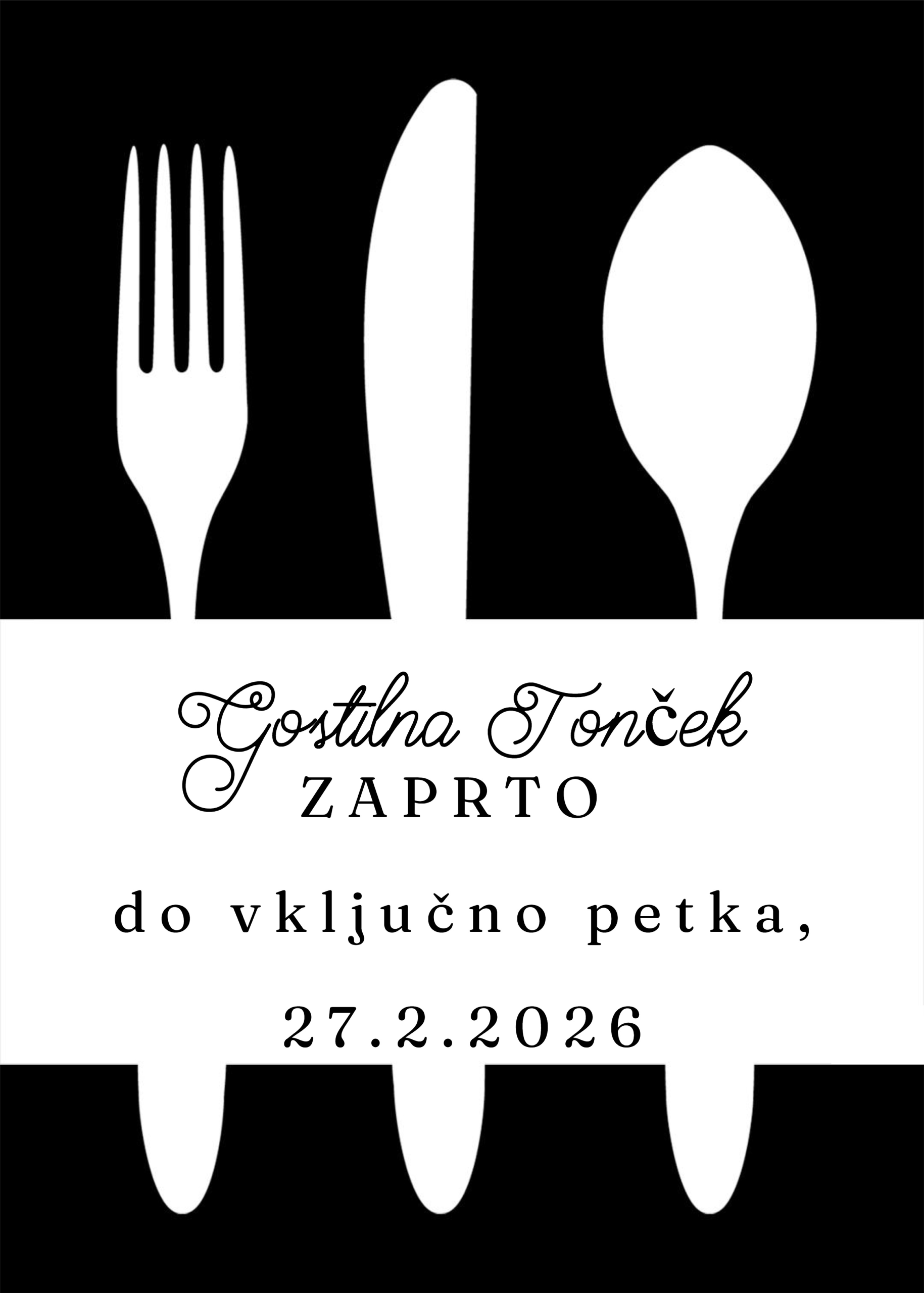 V nedeljo imamo v ponudbi samopostrežna kosila, jedi po naročilu ne pripravljamo.