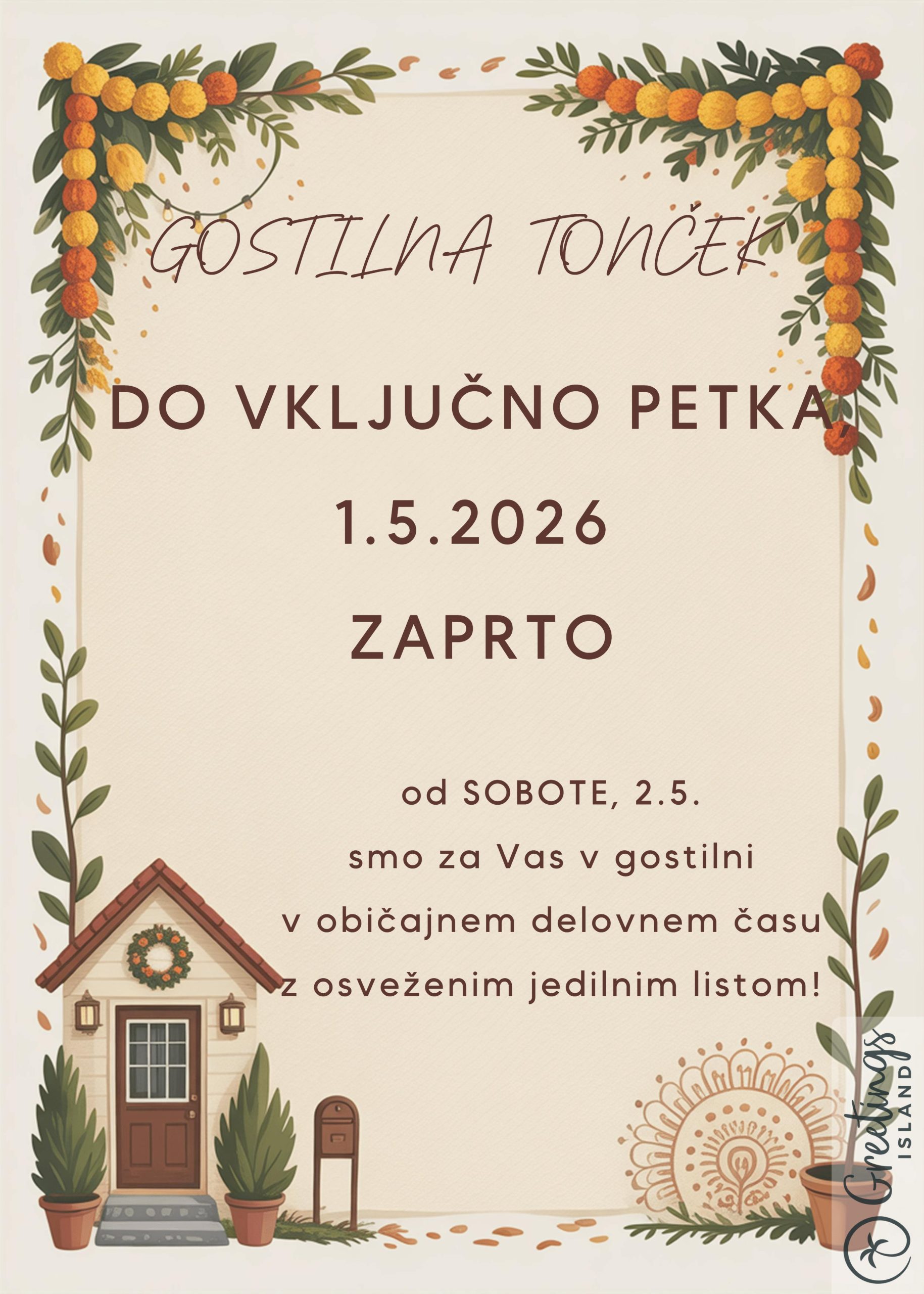 Rezervacije niso nujne, so pa zaželjene in sicer na elektronsko pošto info@gostilna-toncek.si, na telefon 041 746 039 ali preko kontaktnega obrazca.